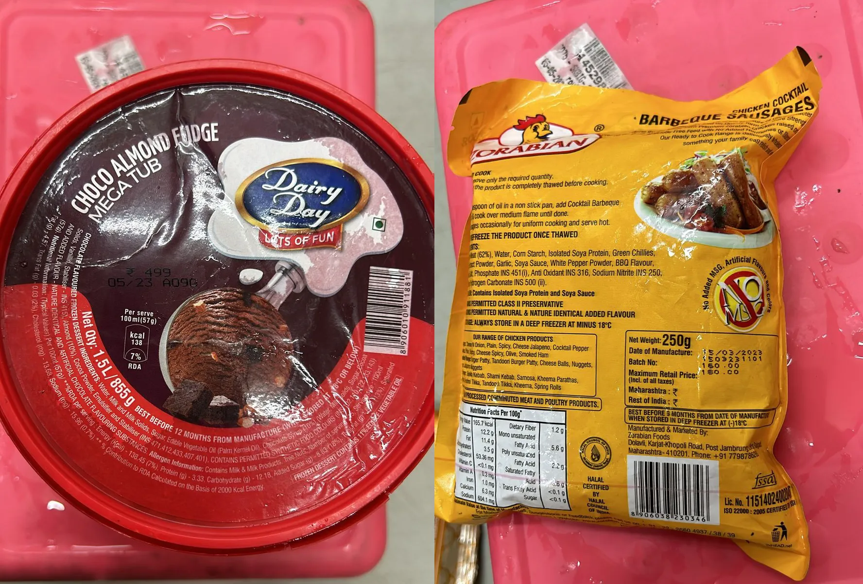 తనిఖీల్లో దొరికిన కాలం చెల్లిన ఐస్ క్రీమ్స్, పన్నీర్, ఆల్మండ్స్, చికెన్ మసాలా, చికెన్ సాసేజ్స్, పిజ్జా చీజ్.