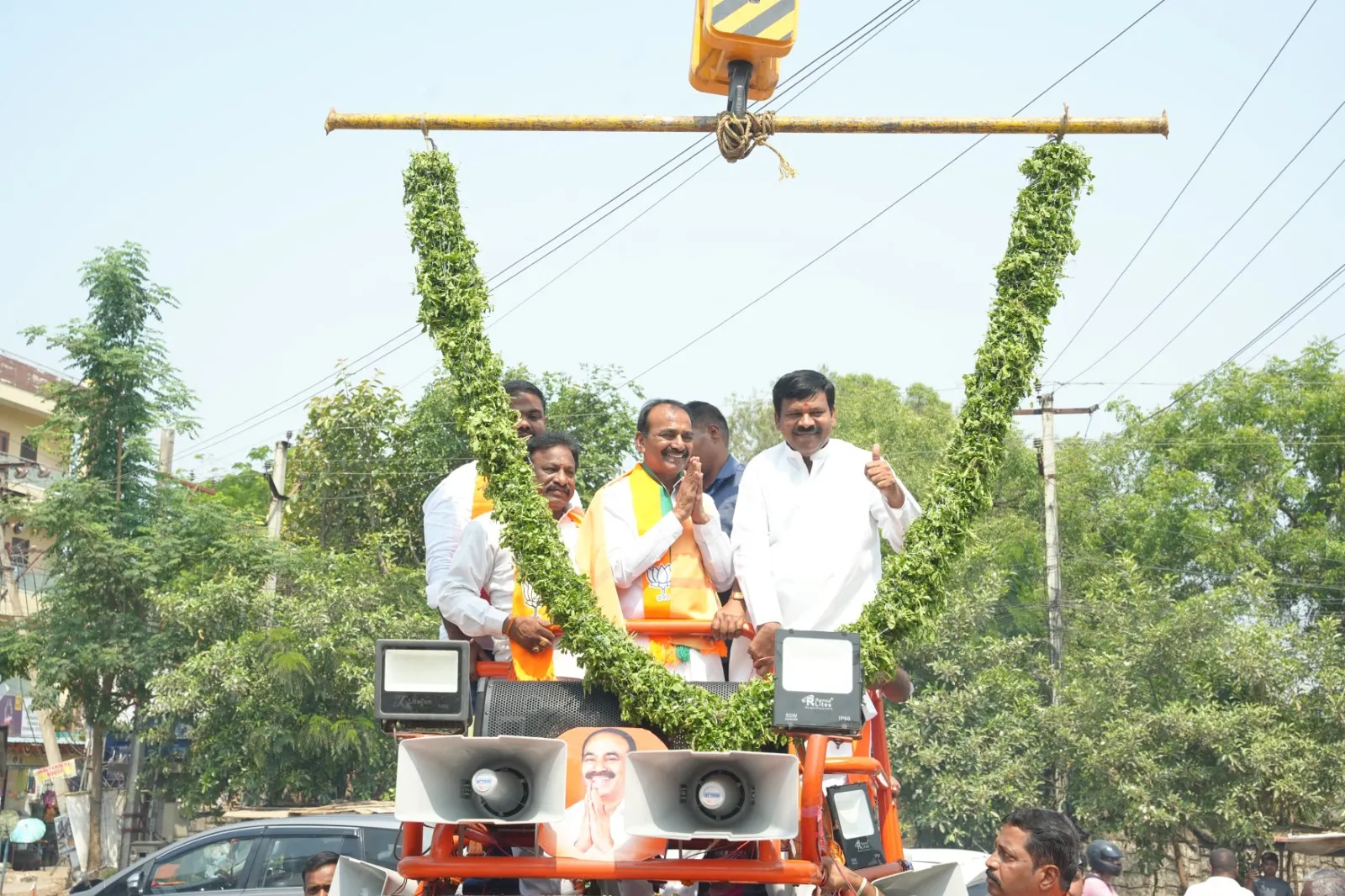 17 సీట్లు గెలిపిస్తే హామీలన్నీ నెరవేరుస్తా అని చెపుతున్న ముఖ్యమంత్రి రేవంత్ రెడ్డి గెలిచాక ఆ హామీ నిలబెట్టుకుంటారా అని ప్రశ్నించారు. కాంగ్రెస్ కు ఓటు వేస్తే ఆ ఓటు విలువ జీరో అని అన్నారు. పేదవాళ్ళ బతుకులు బాగు పడాలంటే బీజేపీ తోనే సాధ్యం అన్నారు. ఇప్పటికే ప్రధానమంత్రి నరేంద్ర మోడీ 4 కోట్ల మంది పేదవారికి ఇళ్ళు కట్టించి ఇచ్చారని గుర్తు చేశారు. రాష్ట్రంలో కేంద్ర ప్రభుత్వ పథకాలు సక్రమంగా అమలు చేయక పోతే ఆ బాధ్యత తాము తీసుకుంటాం అని మోడీ నిర్ణయించడం గొప్ప విషయం అని గుర్తు చేశారు. పేదల ఇంటి నిర్మాణ విషయంలో రాష్ట్ర ప్రభుత్వం సహకరించక పోతే కేంద్ర ప్రభుత్వం ఇళ్లు కట్టించే బాధ్యత తీసుకుంటుందని చెప్పారు. ఈ సారి జరిగే పార్లమెంట్ ఎన్నికల్లో మల్కాజ్ గిరి ఎంపీగా తనను గెలిపించాలని ఈటెల వేడుకున్నారు. అనంతరం మాజీ ఎంపిపి చంద్రశేఖర్ యాదవ్ మాట్లాడుతూ శివాజీ మహరాజ్, వివేకానంద స్ఫూర్తితో ధర్మం కోసం పనిచేస్తానని స్పష్టం చేశారు. ఈటెల రాజేందర్ కు ఓటు వేస్తే ప్రధాని మోడీ కి ఓటు వేసినట్లే అని స్పష్టం చేశారు. బీజేపీ బలోపేతానికి శాయశక్తులా కృషి చేస్తానని తెలిపారు.