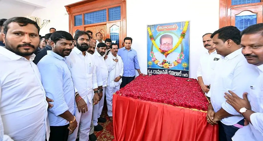 దేవరకొండ లో రవీంద్ర కుమార్ తండ్రి కనిలాల్ చిత్రపటానికి నివాళులు అర్పించిన మాజీ మంత్రి కేటీఆర్.