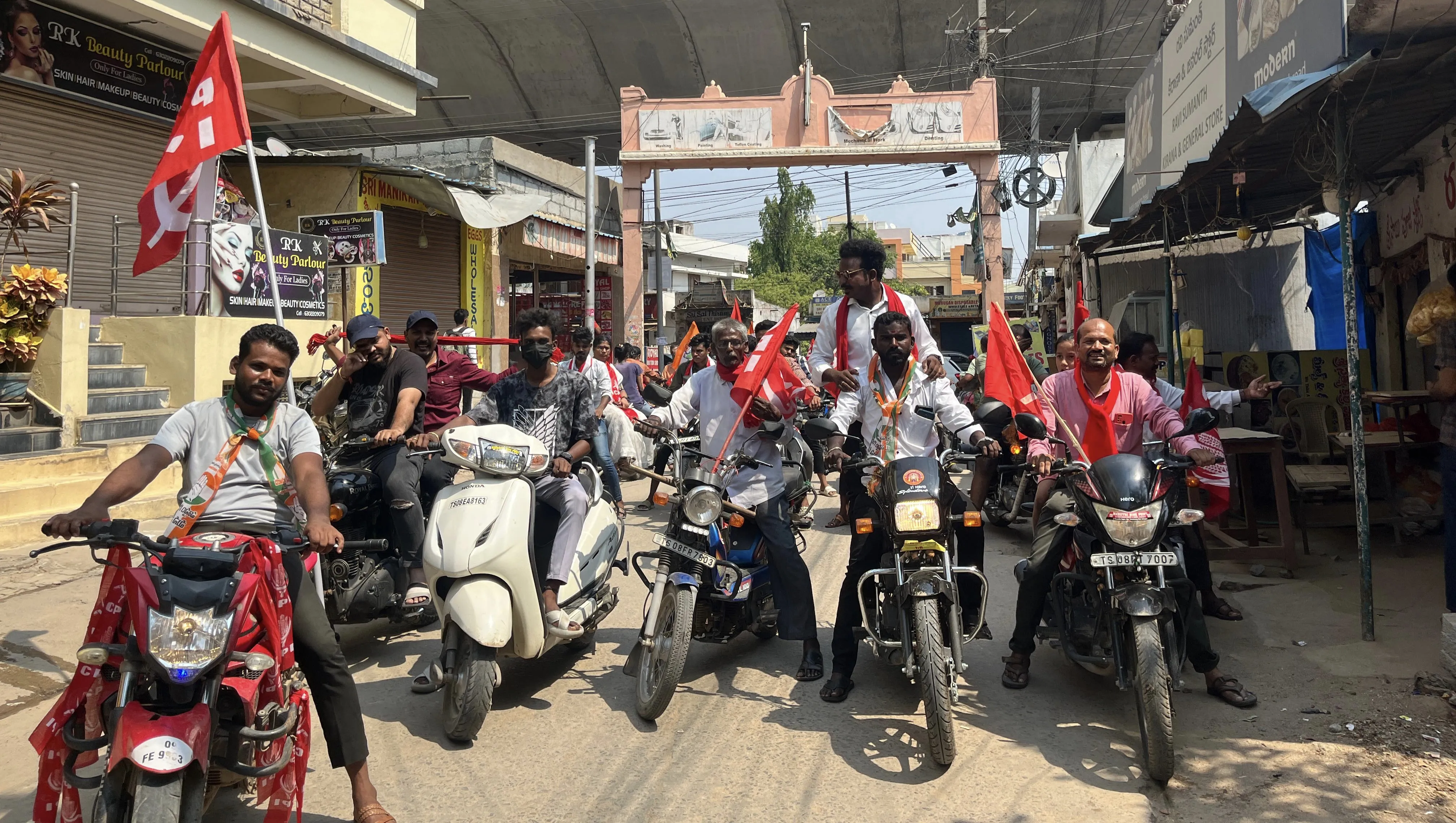 సిపిఐ పార్టీ ఆధ్వర్యంలో ఇండియా కూటమి కాంగ్రెస్ పార్టీ అభ్యర్థికి మద్దతుగా బైక్, ఆటోలతో ర్యాలీ